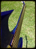 Lowery Ghost in blue with gold hardware and EMG active pickups.