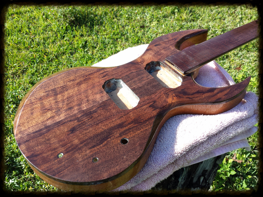 A downsized version of the Banshee, no stinger, with a claro walnut top in oil finish.